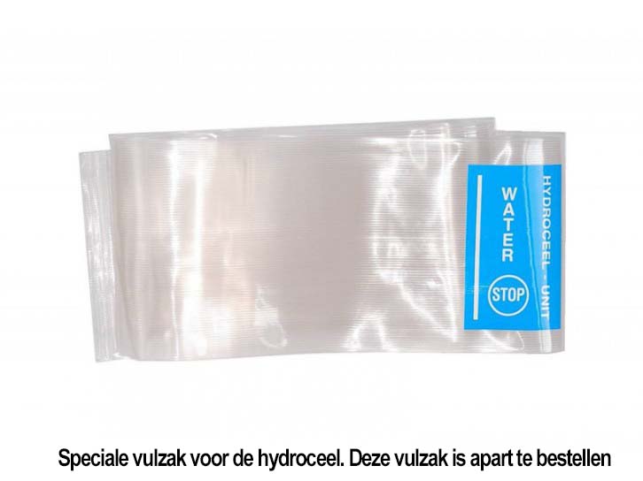 De hydroceel is gevuld met korrels die goed vocht opnemen. Door de unit 10 minuten in een gevulde badkuip onder te dompelen zijn alle korrels verzadigd met vocht.