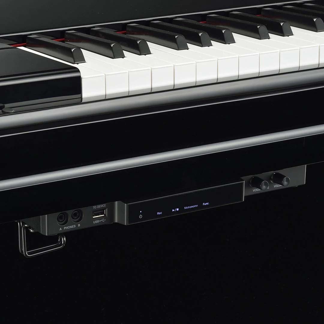 Wanneer de silent-functie wordt ingeschakeld, raken de hamers de snaren niet meer. Het geluid is dan alleen hoorbaar via de koptelefoon. Het speelgevoel blijft echter volledig authentiek, wat deze Yamaha silent piano zeer geschikt maakt voor zowel beginners als gevorderden die flexibel willen oefenen.