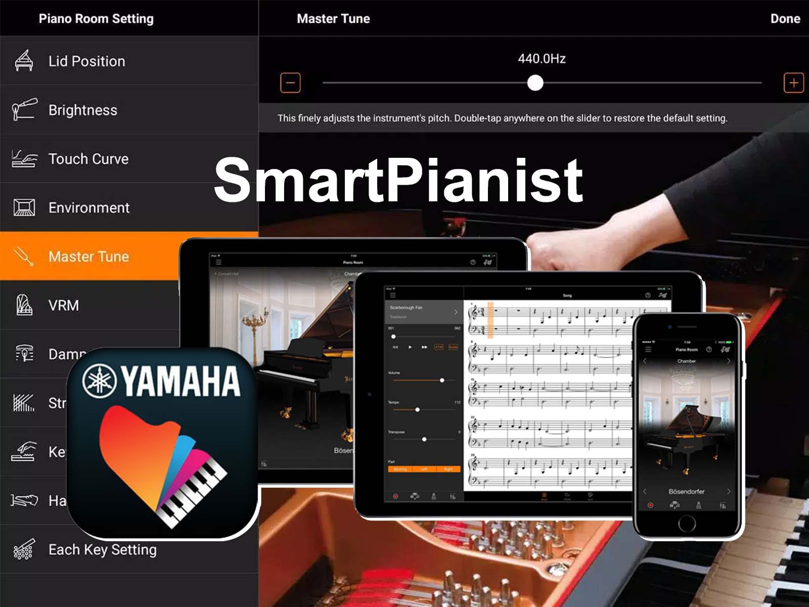 Op deze elektrische piano kunt u een smartphone of tablet aansluiten met de gratis Yamaha Smart Pianist-app. Hierdoor krijgt u een handig digitaal display om bewerkingen uit te voeren zoals voiceselectie en het afspelen van songs.
