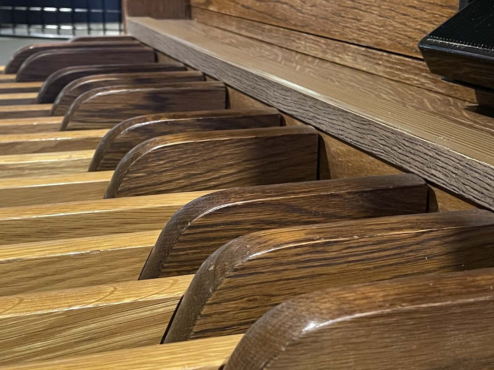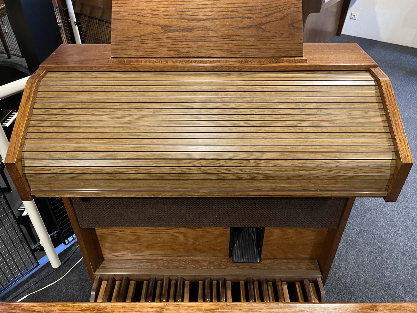 Het inschuifbare 27-tonige pedaal zorgt ervoor dat u beschikt over een volwaardig pedaal, terwijl het orgel dankzij de compacte bouw eenvoudig te plaatsen is in een huiskamer of studeervertrek.